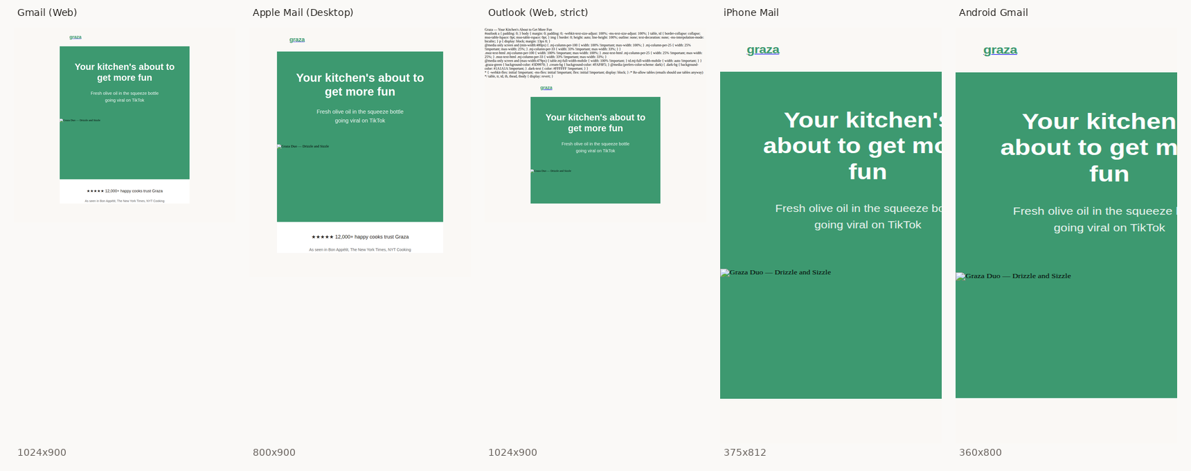 Every email is rendered in 5 simulated client viewports using headless Chrome. Below is the actual screenshot grid for this email.